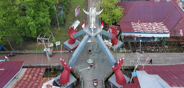 Kami berada di pusat Kota Agats, dekat dengan tugu tangan dan akses laut.
